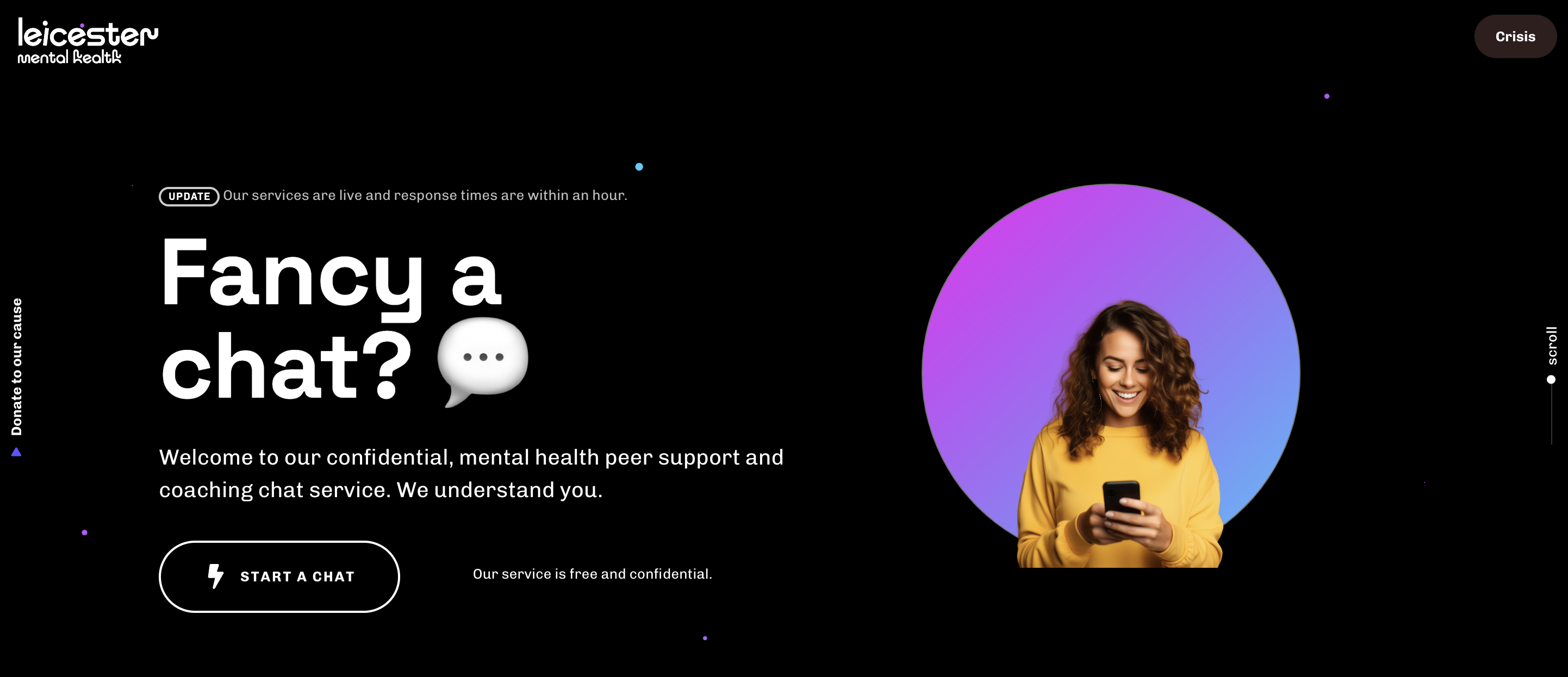 Knus (a Community Interest Company) calls itself the UK’s first free, confidential, mental health peer support and coaching service. Now it has launched LeicesterMentalHealth.com, where users must first answer a bot’s initial questions and then can start an online chat with a trained and experienced peer support coach.